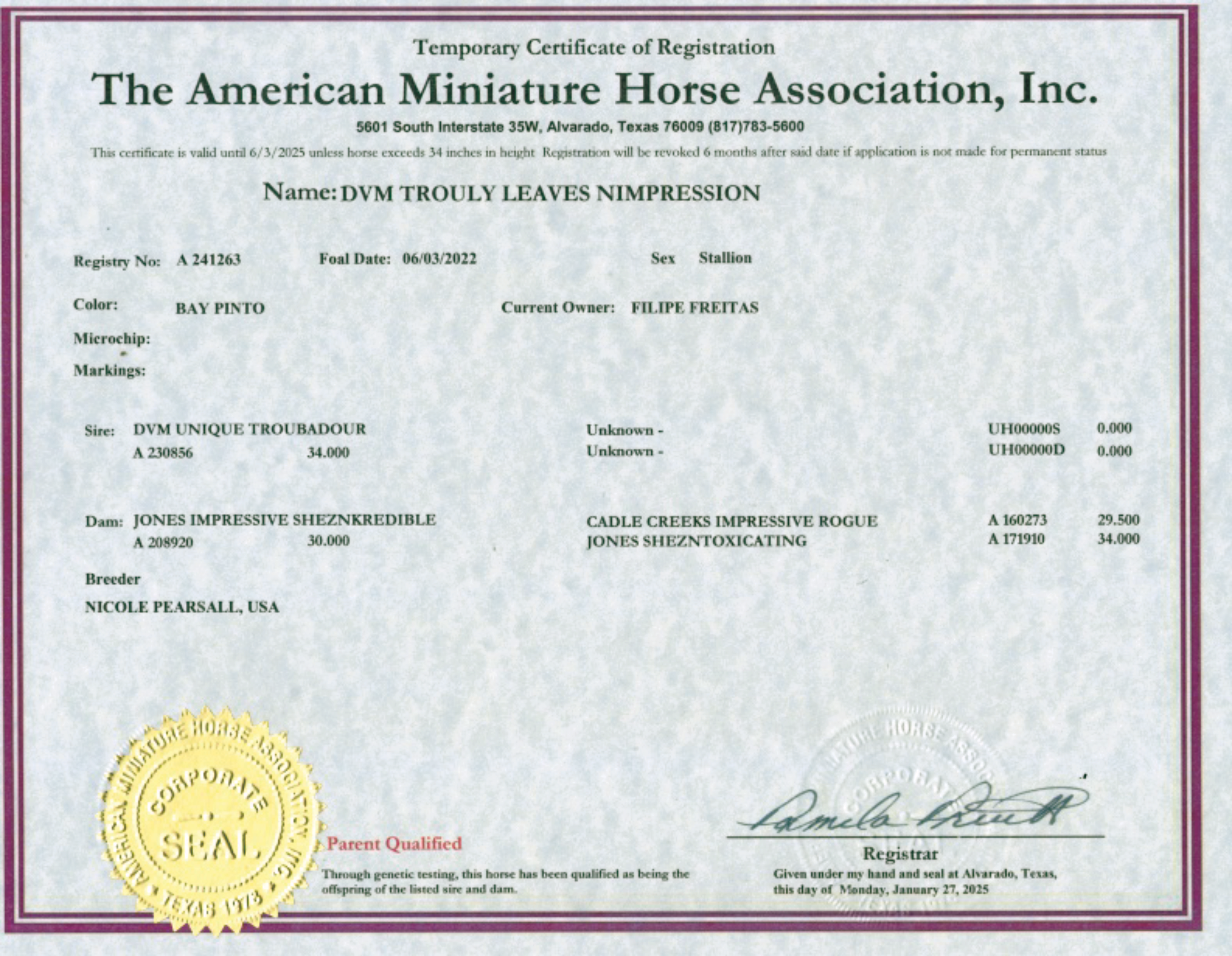 2023 Amateur 3rd Junior Stallion 31/33 Level 1